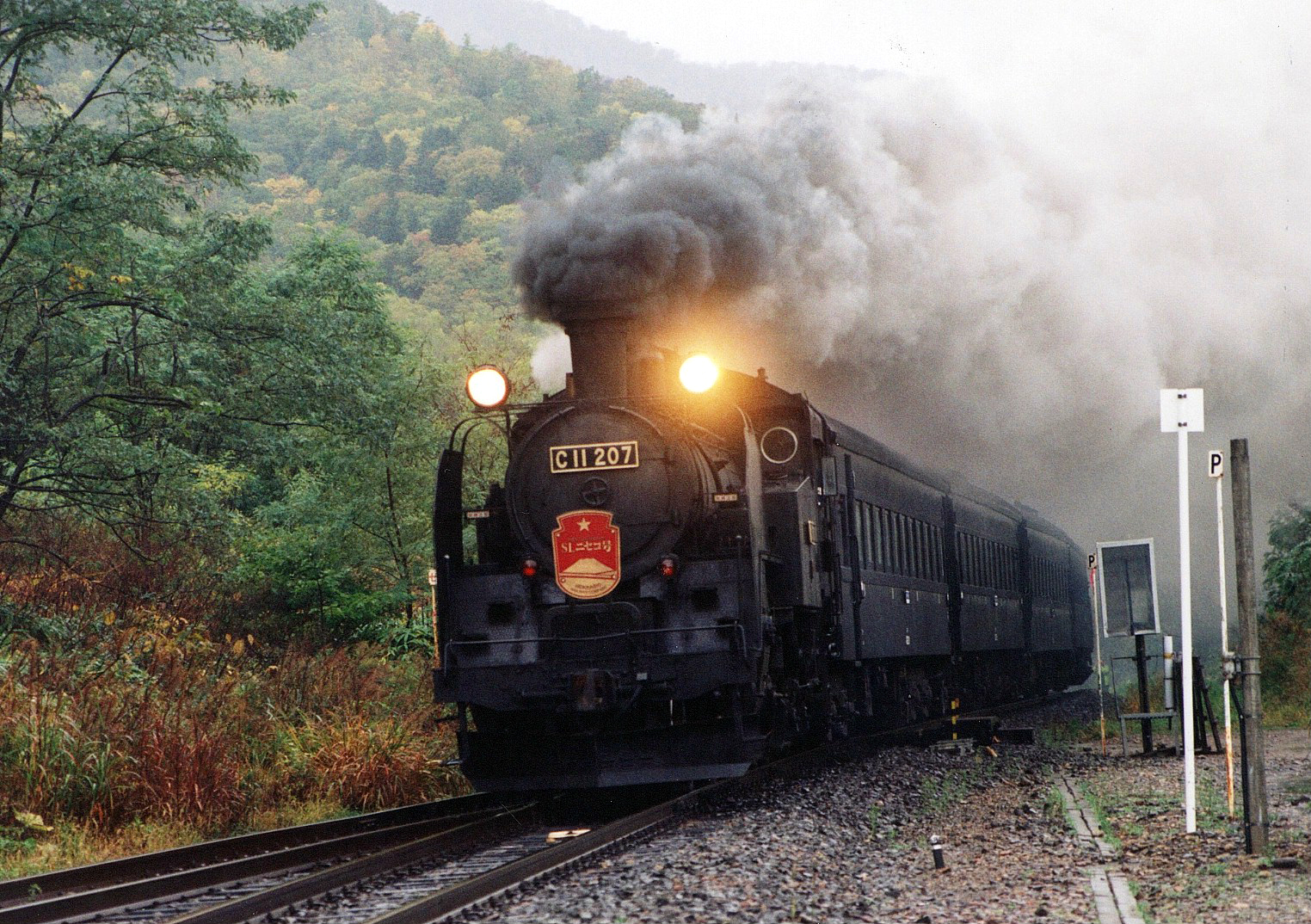 蒸気機関車は秋の紅葉の季節に札幌から蘭越まで運行し実際蒸気機関車が牽引するのは小樽からなのですが沢山のにわか鉄道ファンが写真をとっています。